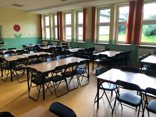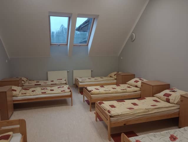 Baza noclegowa to zespół szkolno-przedszkolny. Zakwaterowanie w salach 6-10 osobowych. Na piętrze znajdują się wspólne łazienki dla wszystkich pokoi. W pokojach dostępne są pojedyncze łóżka (nie łączone i nie piętrowe), szafki, stoliki oraz krzesła.